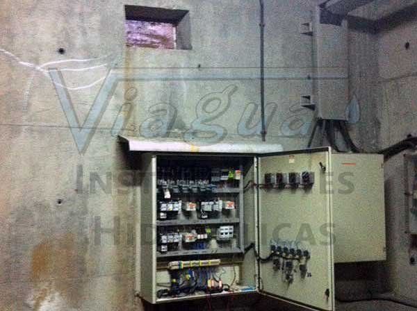 • Instalación de cuadro de protección y mando para el arranque de las bombas en alternancia automática, con arrancadores suaves de los motores. Arranque de los equipos de cloración, ácido y eventuales, con ventilación independiente del cuadro.